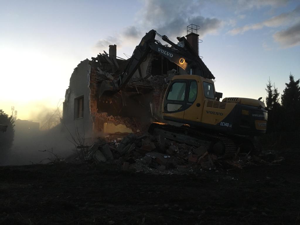 Rušenje stanovanjske hiše, izkop zemljine oz.nenosilnega materiala in izdelava tamponskega nasutja za gradnjo dveh samostojnih hiš.