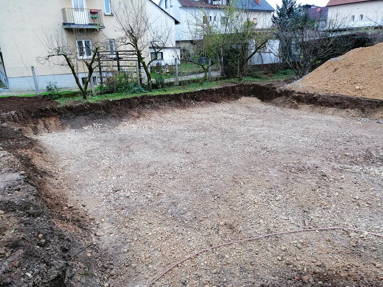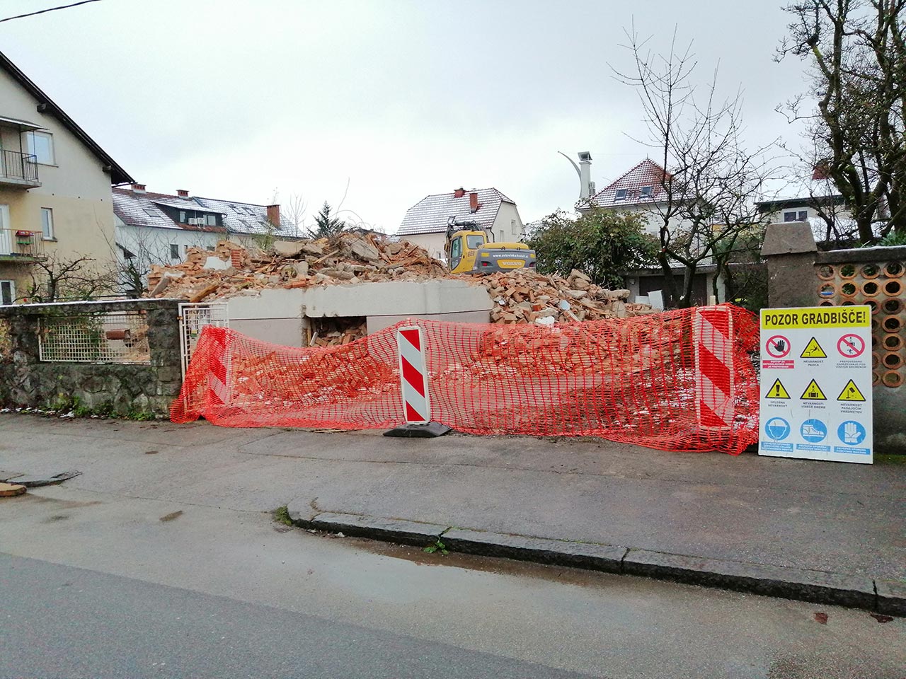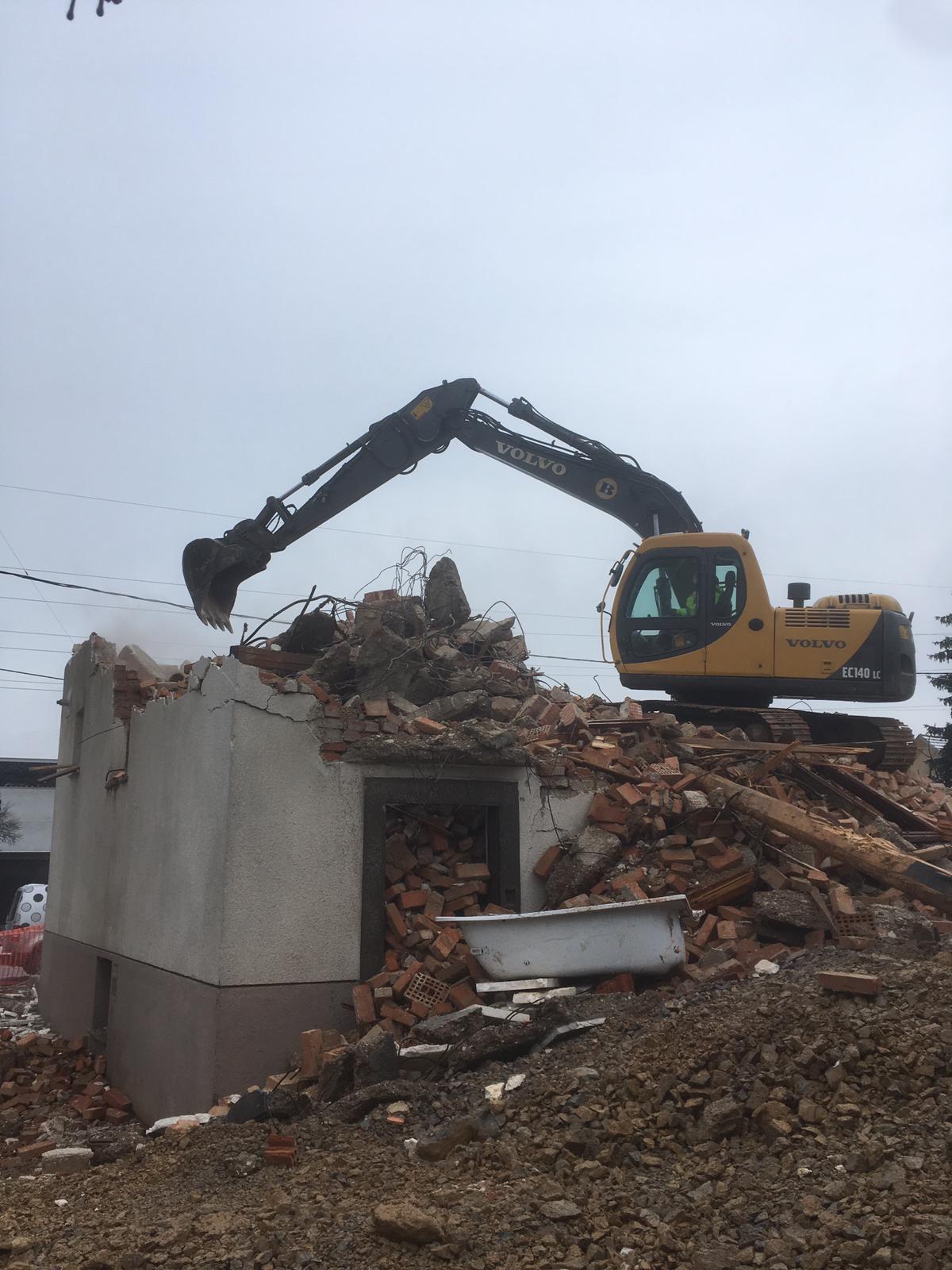 Rušenje stanovanjske hiše, odstranitev temeljev polkleti in izdelava tamponskega nasutja za temelje nove hiše.