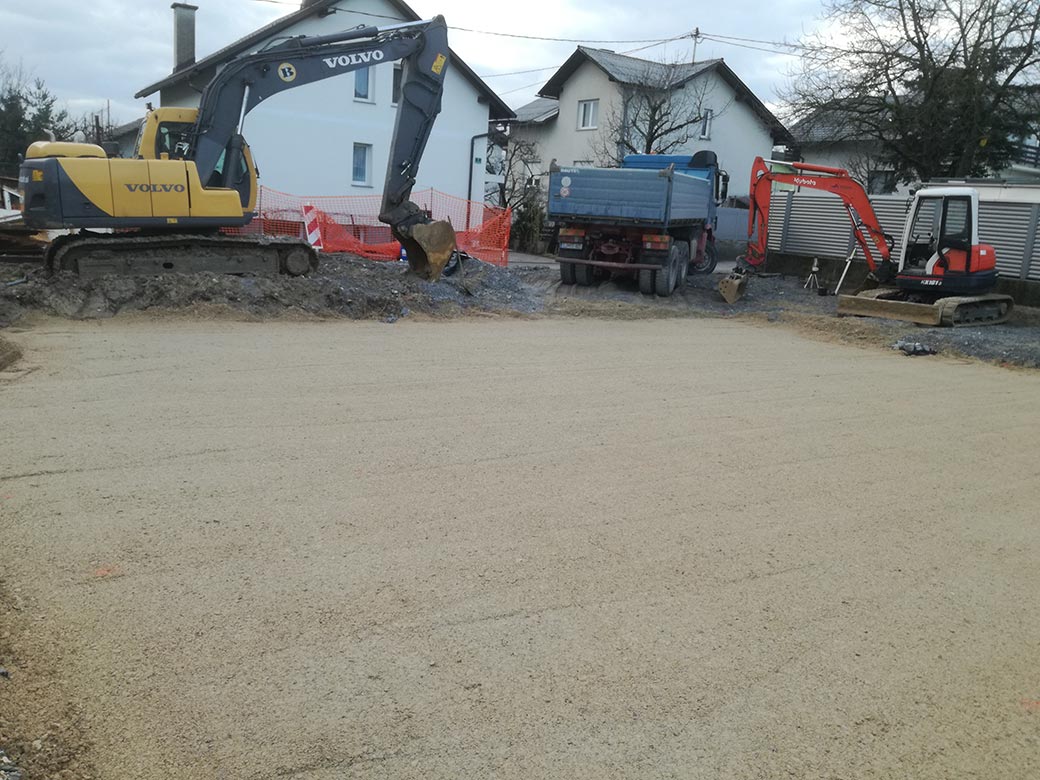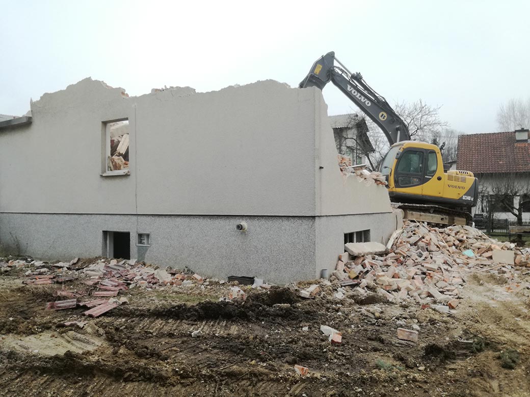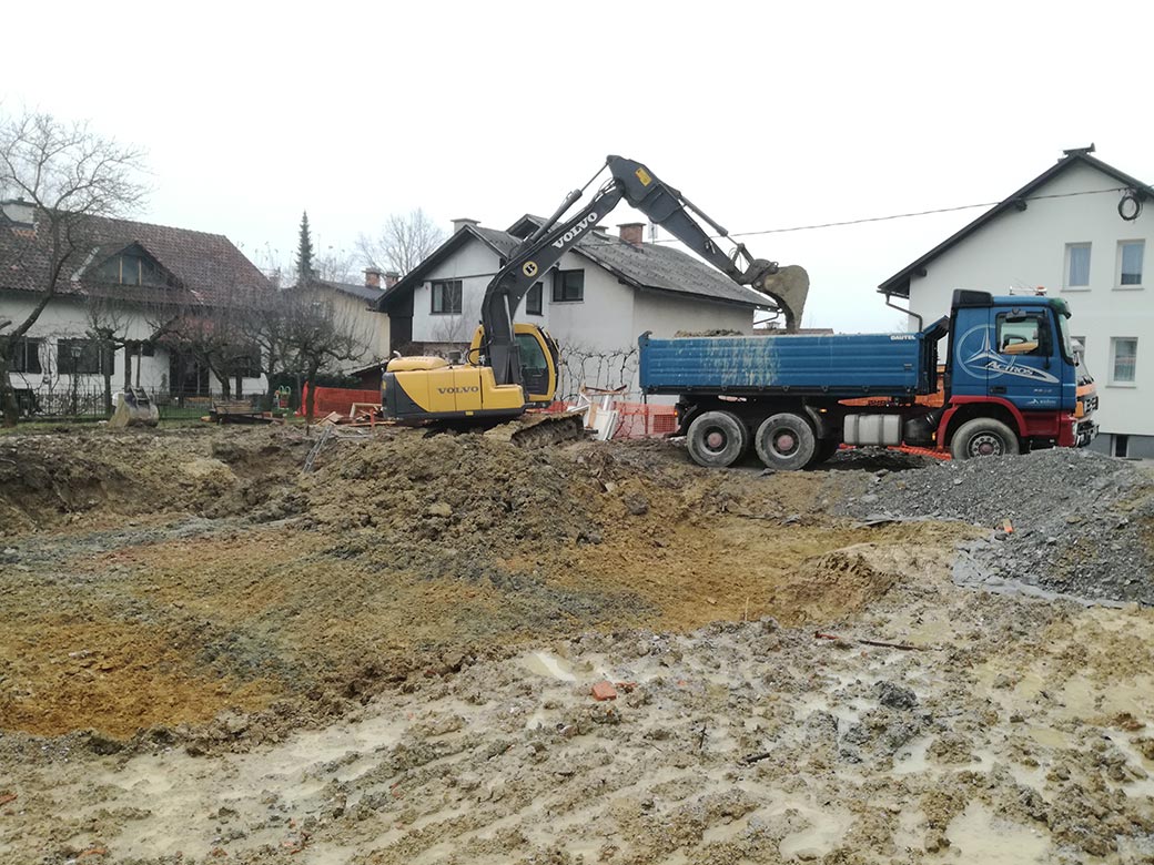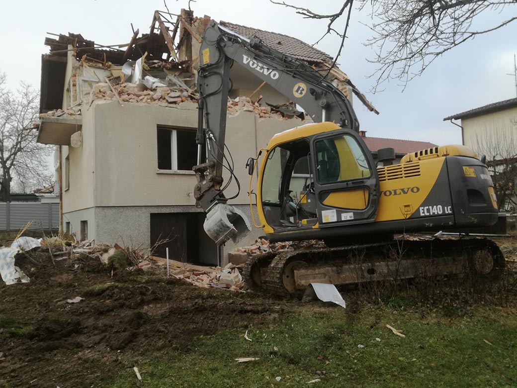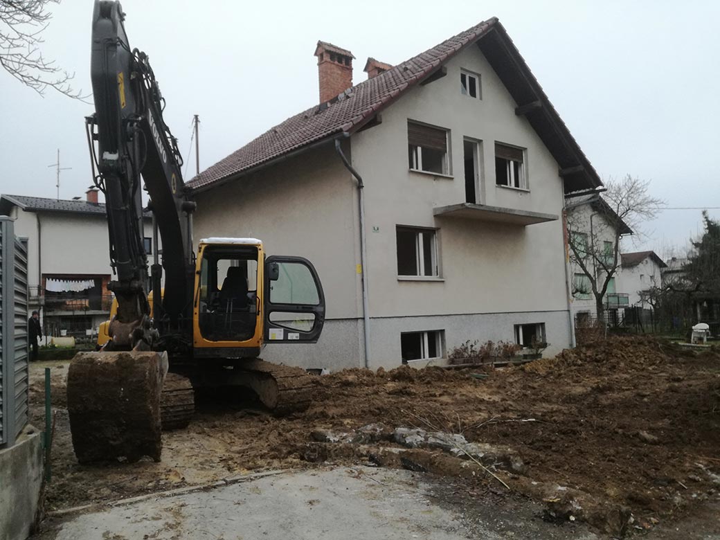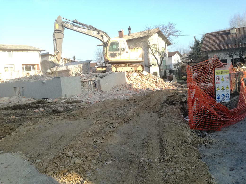Rušenje podkletene hiše, izkop gradbene jame in izdelava tamponskega nasutja.