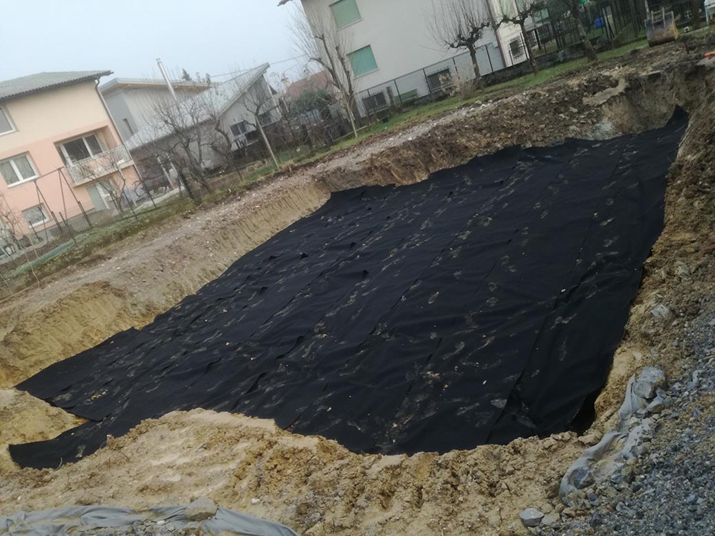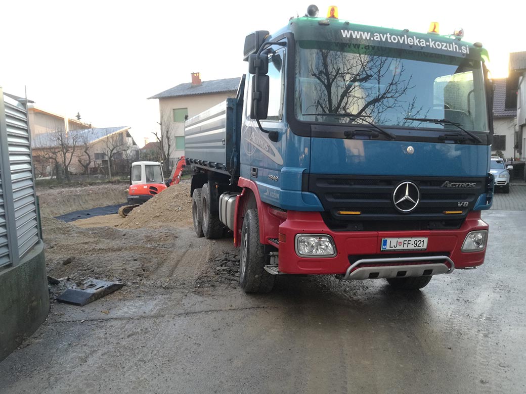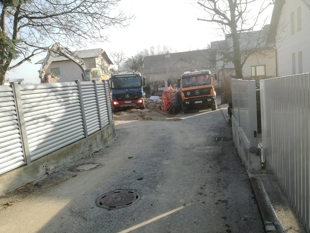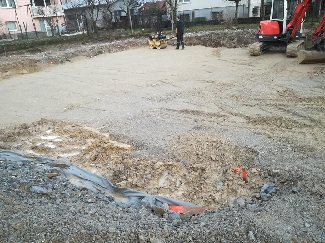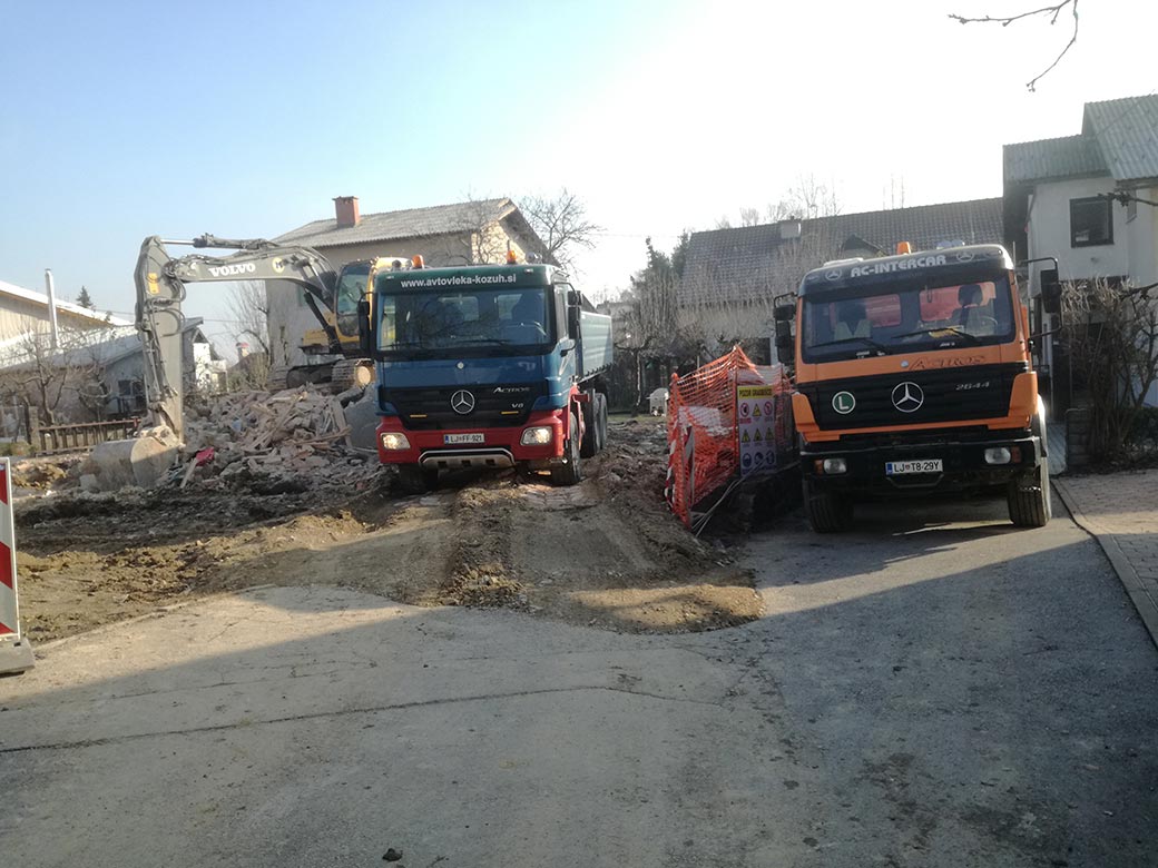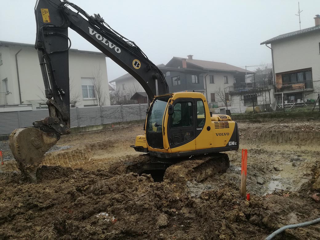 Rušenje podkletene hiše, izkop gradbene jame in izdelava tamponskega nasutja.