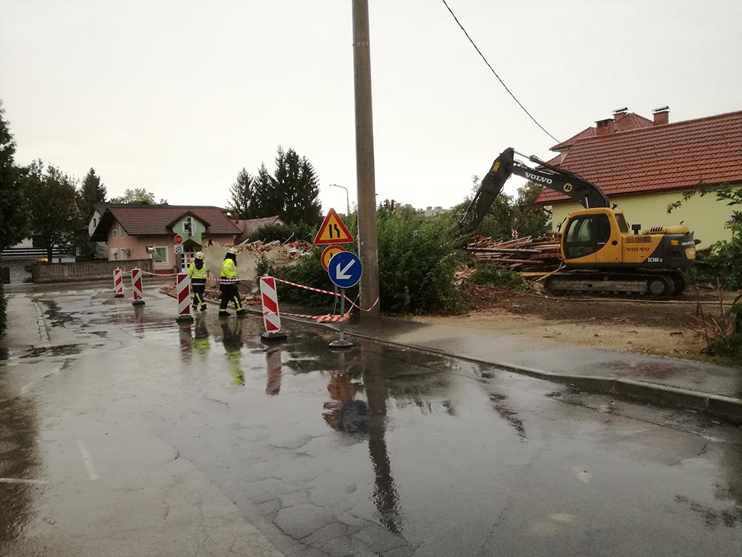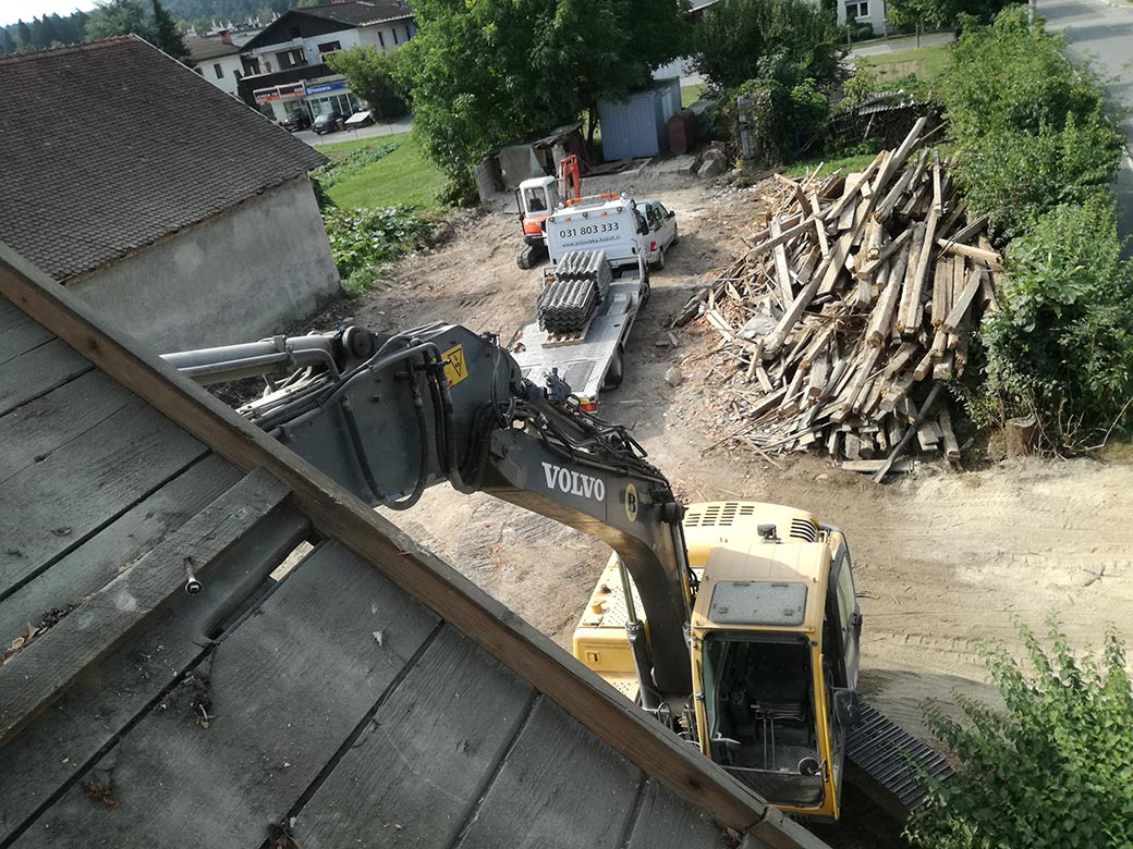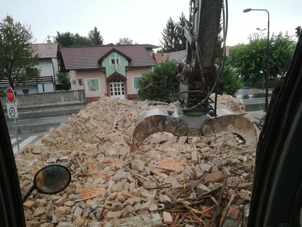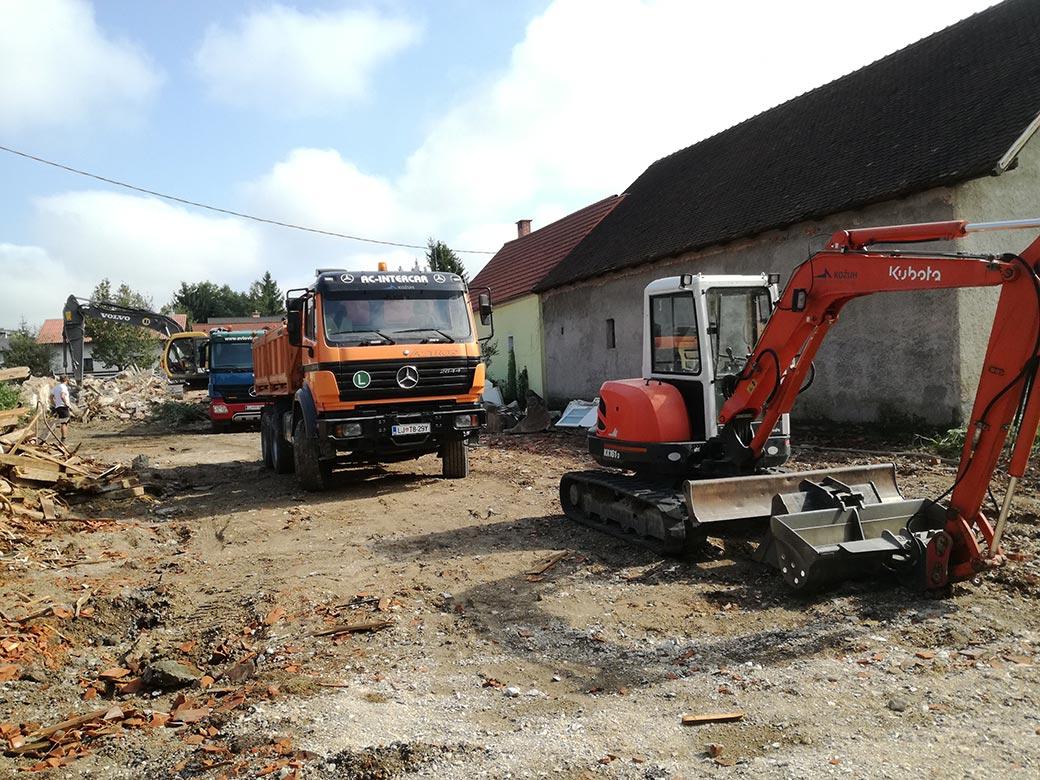 Rušenje stare hiše in hleva.