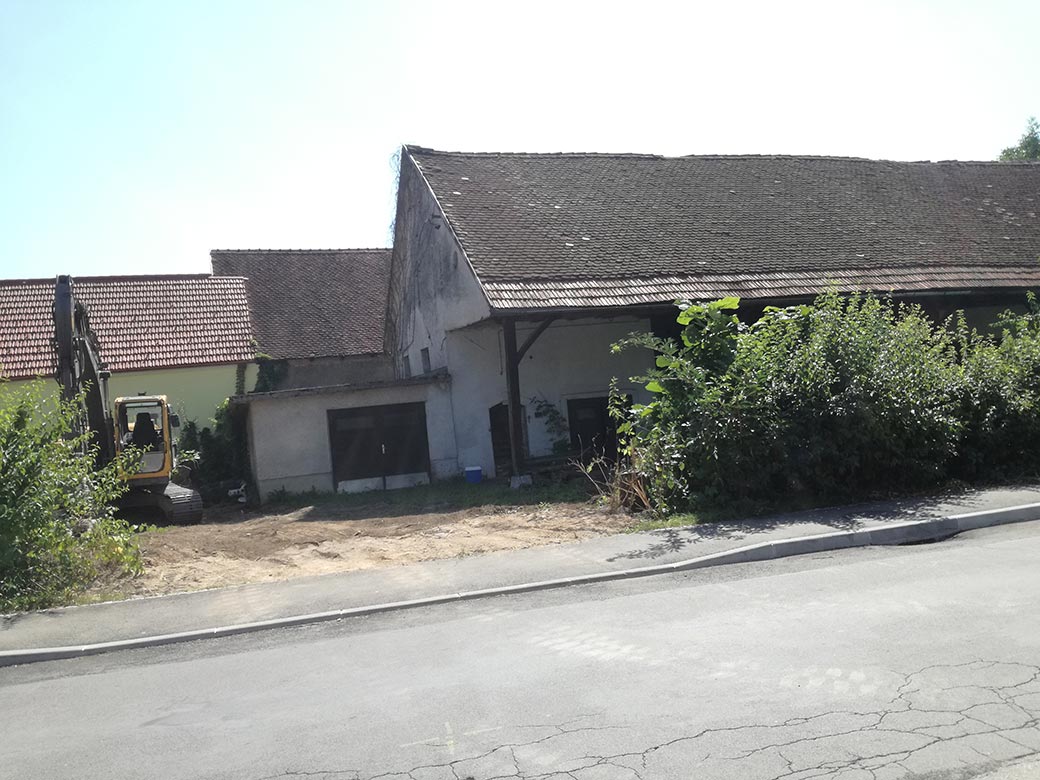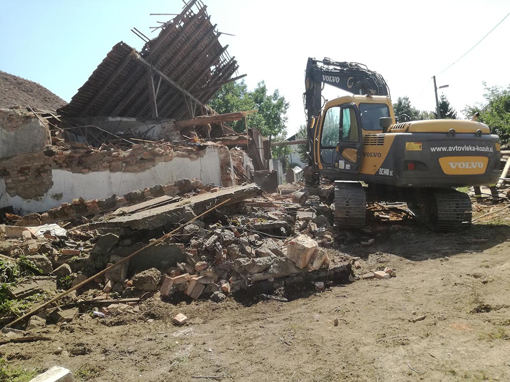 Rušenje gospodarskega poslopja.