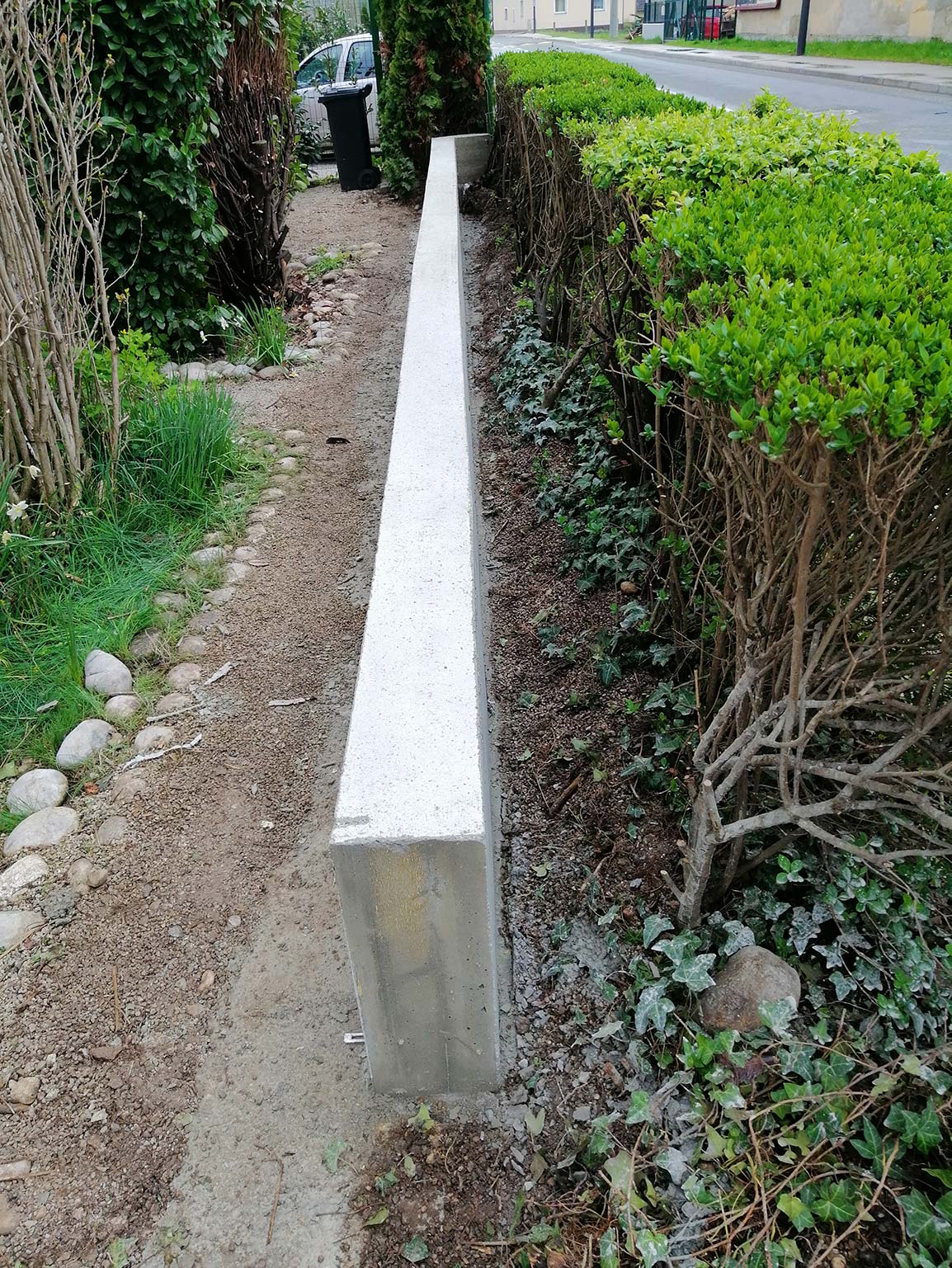 Za stranko smo zgradili ločilni zid po meji parcele.